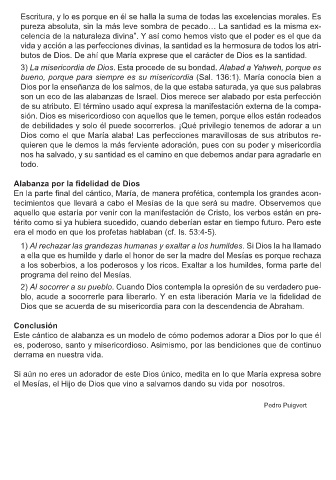 sus perfecciones o atributos. María llama a Dios Señor que es el nombre que los ju- nos ha salvado, y su santidad es el camino en que debemos andar para agradarle en